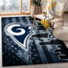 The los angeles rams area rug nfl area rug bathroom rug indoor rugs rectangle carpet is designed with 3 layers, flannel composite sponge rug, a middle foam layer, and non-slip plastic dots on the bottom made of non-woven fabric to enhance water absorption. With a thickness of 1.2 cm, it is durable and woven and dyed using advanced technology, resulting in a soft texture.